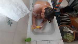 Darkabyss is a seriously sexy woman! She gets in the tub showing off her bare legs with only a sheer, tight, clingy night dress on. Her awesome double d breasts are clearly visible through the thin white fabric. This alone was enough to have me pre ejaculating in my pants! Then she gracefully sits in the warm tub as the soft cotton material soaks up the water. Her breasts and nipples are very obvious and clear. She gets her hair wet and gracefully shampoos it. After rinsing it off we see her lift her left sexy leg and cover it in shaving cream as she shaves it. Her leg and bare foot are very sexy, then comes the right leg. As she lifts it up we get quick glimpses of her pussy area as she is wearing no panties; so sexy! We are treated to nice leg and bare foot shots in this scene. One can easily masturbate to a nice warm orgasm just thinking of being in the tub with this princess!